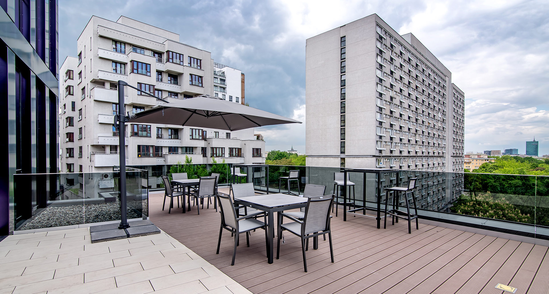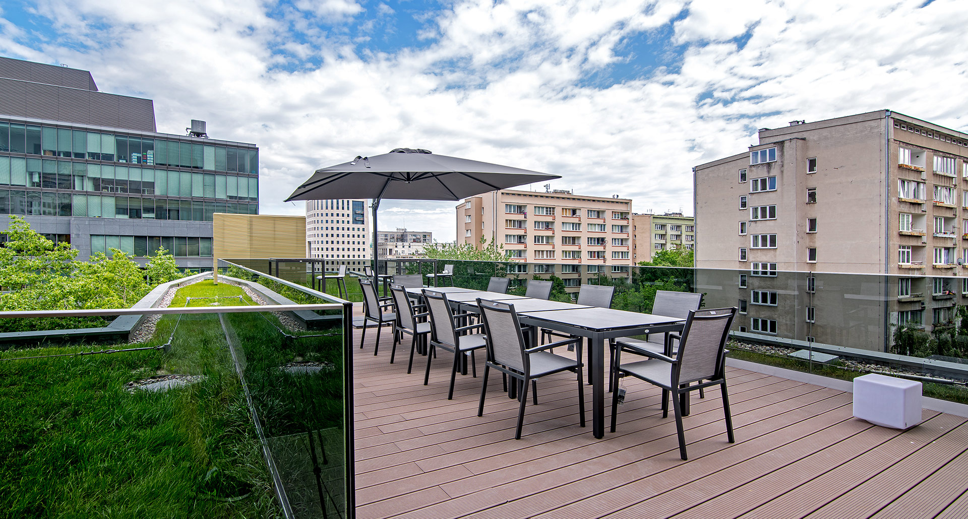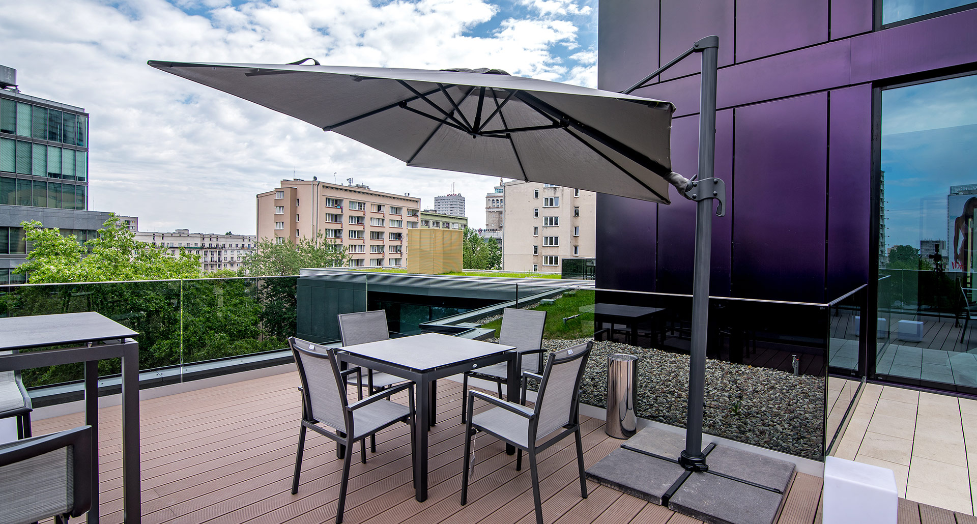 Pierwszych 6 pi?ter dysponowa? b?dzie reprezentacyjnymi tarasami. Ka?de pi?tro przewidziane jest dla jednego Najemcy, aczkolwiek, ze wzgl?du na wielko?? powierzchni, na pi?trach od 1 do 5, b?dzie mo?liwo?? podzielenia powierzchni na 2-3 odr?bne mniejsze biura, a na pi?trze 7 oraz 8 istnie? b?dzie mo?liwo?? podzia?u na 2 oddzielne biura. Na 6 pi?trze zaprojektowane jest ekskluzywne miejsce relaksacyjne, po??czone z du?ym tarasem, na którym umieszczony zostanie ogród, tworz?c w ten sposób idealne miejsce odpoczynku.