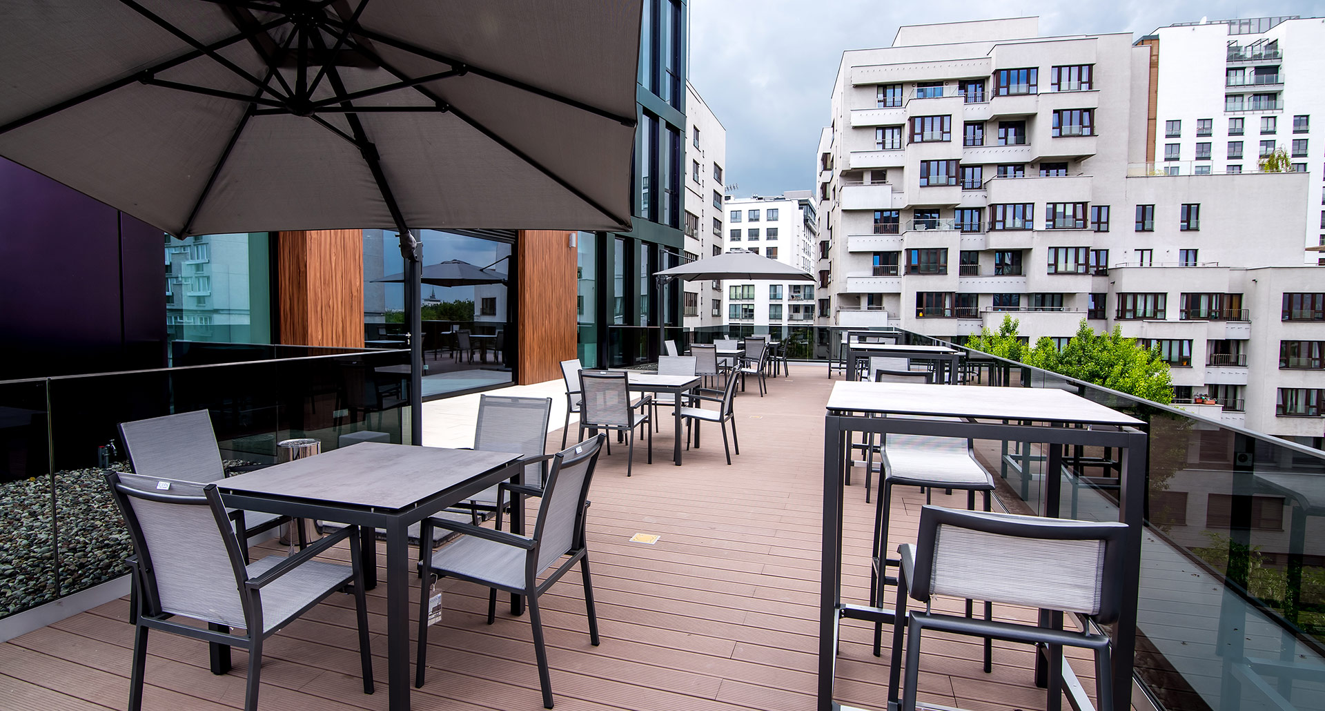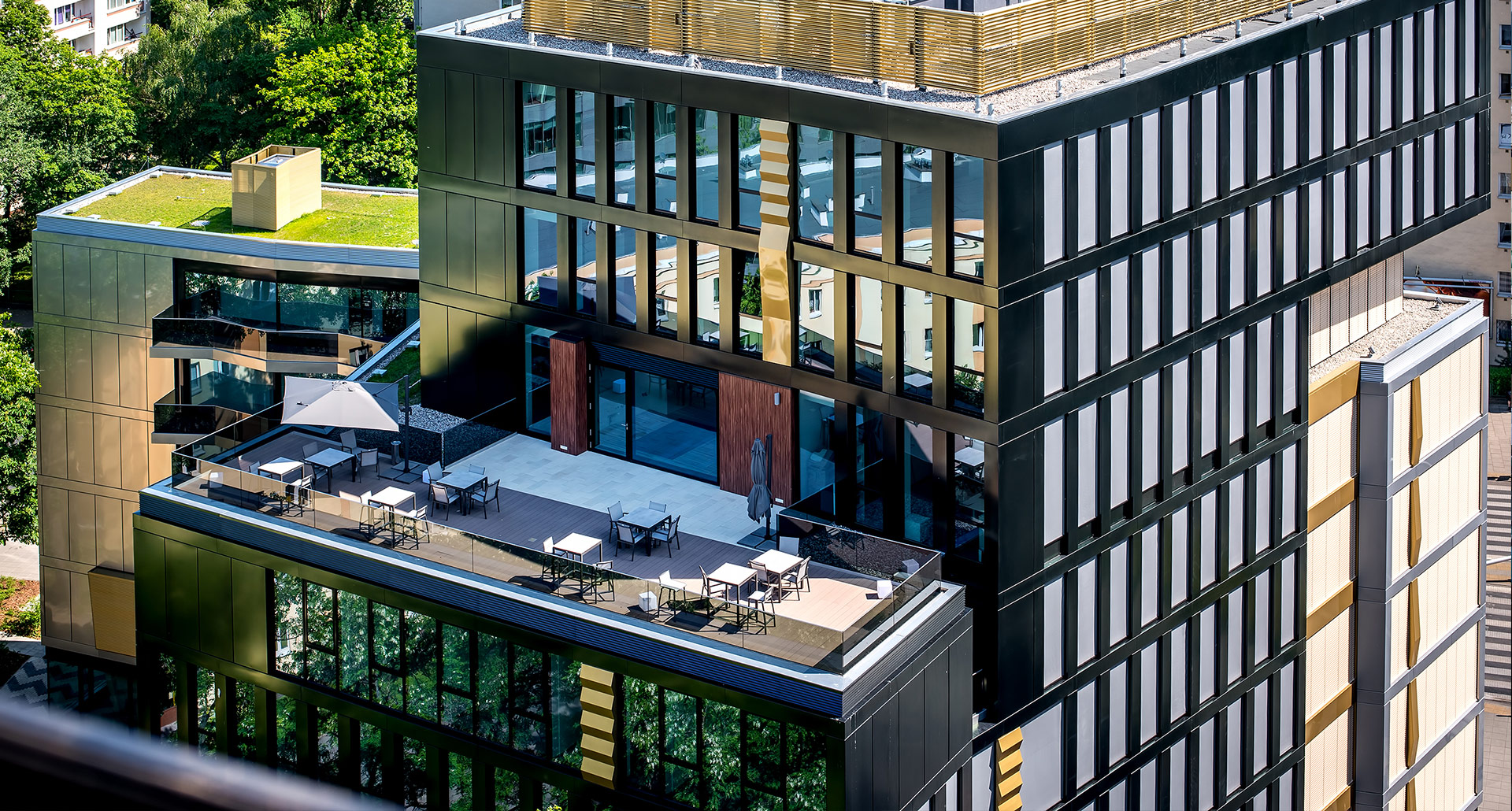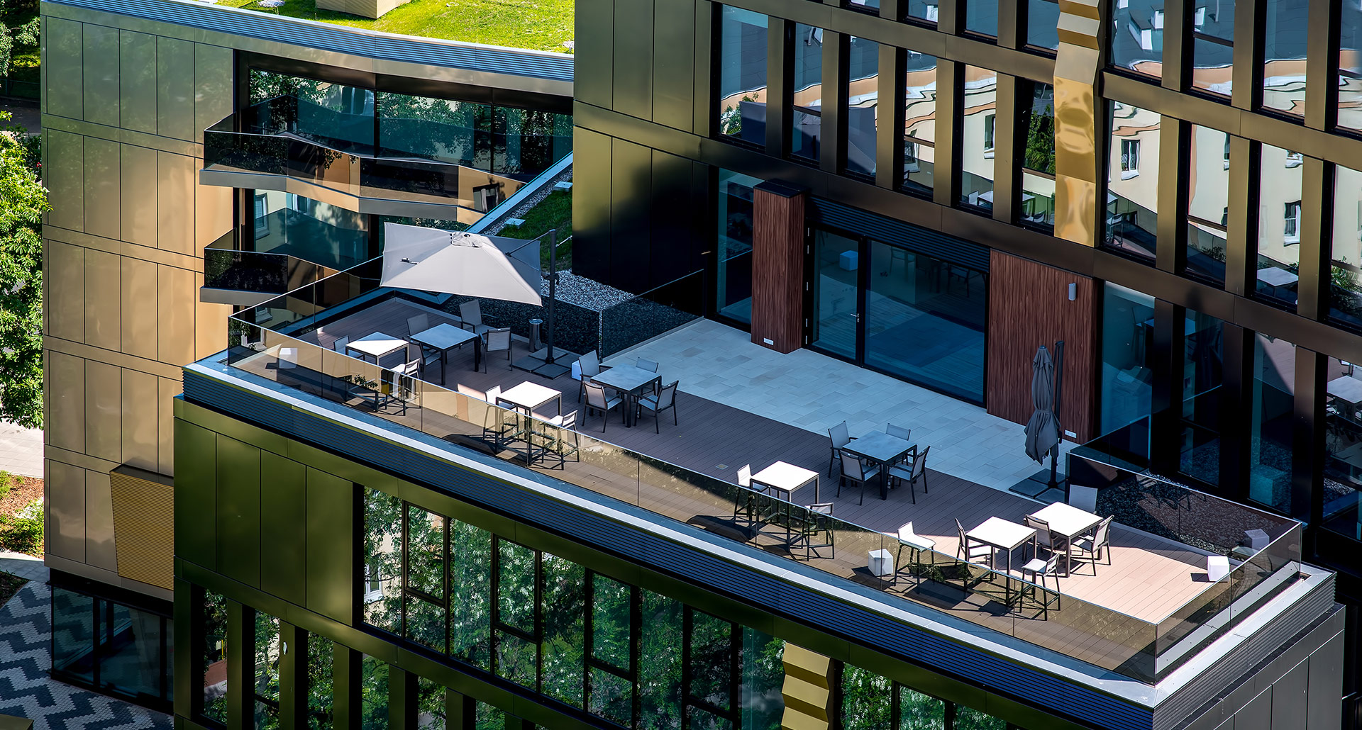 Pierwszych 6 pi?ter dysponowa? b?dzie reprezentacyjnymi tarasami. Ka?de pi?tro przewidziane jest dla jednego Najemcy, aczkolwiek, ze wzgl?du na wielko?? powierzchni, na pi?trach od 1 do 5, b?dzie mo?liwo?? podzielenia powierzchni na 2-3 odr?bne mniejsze biura, a na pi?trze 7 oraz 8 istnie? b?dzie mo?liwo?? podzia?u na 2 oddzielne biura. Na 6 pi?trze zaprojektowane jest ekskluzywne miejsce relaksacyjne, po??czone z du?ym tarasem, na którym umieszczony zostanie ogród, tworz?c w ten sposób idealne miejsce odpoczynku.