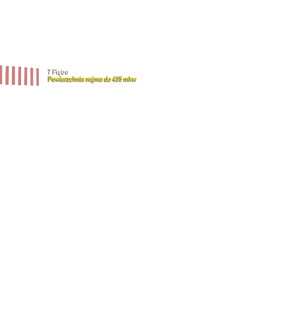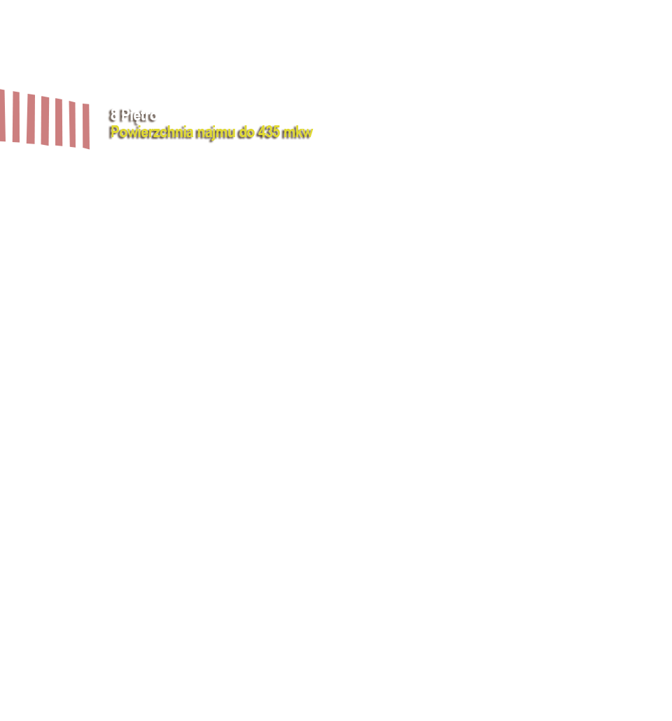 Powierzchnie biurowe b?d? spe?nia? wszelkie wymogi dotycz?ce nowoczesnego standardu klasy AA. Pi?tra biurowe 1 – 5, b?d? dysponowa? powierzchni? o wielko?ci ok. 800 m2, pozosta?e 3 pi?tra ok. 400 m2. Ka?de pi?tro zawiera? b?dzie tak?e trzon pionu (klatka schodowa, 2 windy), lobby, elastyczne powierzchnie biurowe (stosowne do miejsc pracy, sal konferencyjnych, aneksu kuchennego, komfortowego miejsca relaksu) oraz pomieszczenia sanitarne.